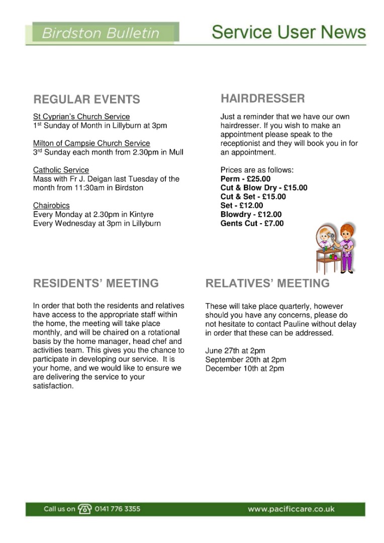 Birdston Care Home Bulletin